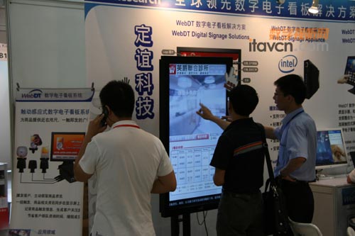 美商定誼科技作為此次展會屈指可數的軟硬件整合提供商,除了展出多媒體信息播發在線管理軟件系統(WebDT Content Manager 3.0),還將展出與Intel戰略合作伙伴一起推動的全高清網絡媒體播放器系列: 透過該平臺能夠提供低功耗但效能極佳的全高清視頻/Flash動態播放,堪稱同業領航性產品。展會中亦倡導互動性的觸動感應式播放器以展示數字電子看板更靈活進階的運用; 此外,液晶觸控一體機在醫療、商場、餐飲行業的應用展示,也將在技術和實施上帶給觀眾自助查詢的切實感受。