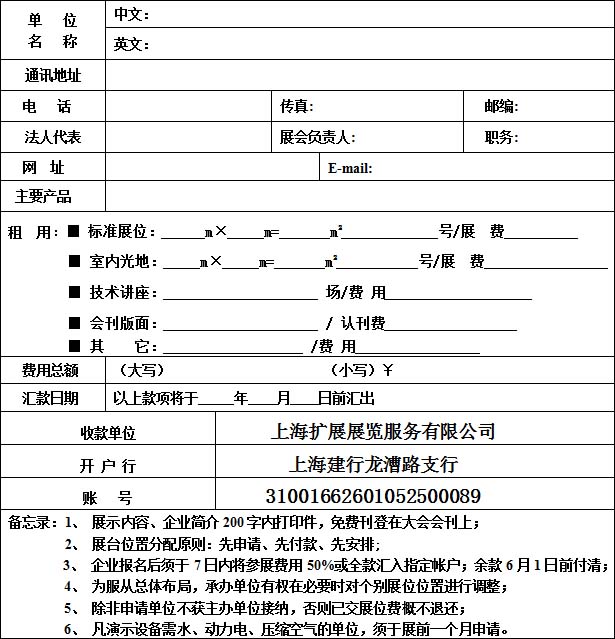 地址:上海市徐匯區漕溪路251弄望族城5號樓602 參展單位:(公章)