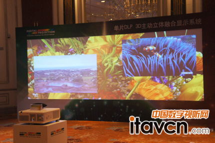 推介會現(xiàn)場搭建的12,000流明單片DLP3D主動立體顯示系統(tǒng)M-Vision930和12,000流明3片DLP激光光源一體化投影機顯示系統(tǒng)為參會者呈現(xiàn)了新產(chǎn)品的精彩表現(xiàn),也引發(fā)熱烈參觀與討論。此外,現(xiàn)場還展示了一套用E-Vision7500實現(xiàn)的單片DLP3D主動立體融合顯示系統(tǒng),DP中國技術(shù)總監(jiān)郭震宇為大家講解了3D顯示技術(shù)的應(yīng)用,以及DP的主動立體融合方案。DP產(chǎn)品具有的強大3D立體功能,可呈現(xiàn)完美的3D圖像,為特定領(lǐng)域的應(yīng)用提供了優(yōu)秀的視覺顯示系統(tǒng)。