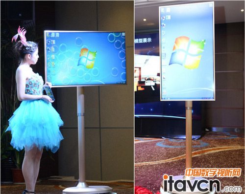 伴隨著輕盈悠揚的背景音樂,輔以模特實時配合展示,保千里商顯事業部計總為大家全方位的講解演示了移動大電腦電視廣告機的強大功能。移動大電腦電視廣告機時尚輕薄設計,轉動可實現橫向、豎向顯示,高度升降可調。航空箱一裝即拖、一拖即走,移動便攜。內置電腦系統,可直接播放高清視頻、圖片及其他文件資料。以手機、平板電腦等移動電子設備配合使用,可實現大小屏互動。適用于商務、會議、展示、廣告、演示等應用領域,可作告示指引、會議培訓、演講展覽展示、門廳迎賓水牌等。