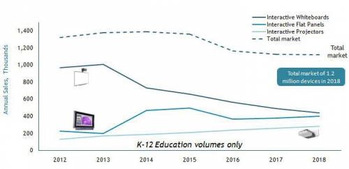 【中國數(shù)字視聽網(wǎng)訊】據(jù)權(quán)威數(shù)據(jù)調(diào)研公司Futuresource統(tǒng)計報告表明,截止2013年底,在中國約31%的班級使用了交互式多媒體設(shè)備進行教學(xué)。多媒體互動教學(xué)模式普及率將在2014年到達41%,2018年時將達到70%以上。明基BenQ為教學(xué)工作者提供超短焦互動投影解決方案,其中短焦投影機加電子白板的方案憑借著性價比與顯示面積的優(yōu)勢最為普及,在現(xiàn)有教室中出現(xiàn)的概率遠(yuǎn)遠(yuǎn)高于其他方案,接下來讓我們詳細(xì)的了解一下這套方案。