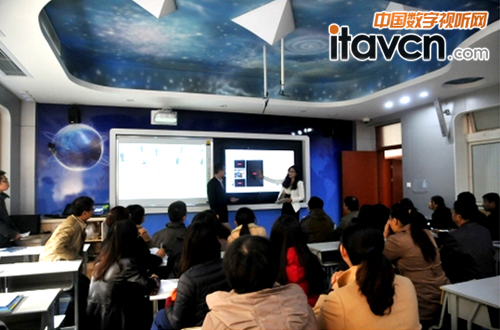 【中國數字視聽網訊】教育事關未來發展。江蘇省無錫市崇安區教育局進行了“未來教育”的探索,并攜手現代中慶,為東林中學和黎莊實驗小學打造了智能、多元的“智慧教室”項目,開啟“智慧教育”的旅程。為了讓老師們更快地進入“未來教師”的角色,現代中慶客戶培訓部應邀前往兩所學校開展“未來教育”的交流探索,并力邀中慶智慧教室的“資深用戶”——山東省煙臺市芝罘區珠璣小學數學老師原學濤,以公開課的形式為當地老師們展示了如何利用中慶產品,提升教學效率,加深信息技術與教育教學的深度融合。