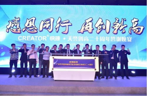 19點整,晚宴開始,廣州市天譽創高電子科技有限公司總經理王國孟先生上臺致辭,感恩20年來各界朋友的支持和厚愛。展望未來,王國孟先生說“CREATOR快捷將繼續走音視頻行業國際品牌路線,希望我們30周年、50周年時候再聚,一同見證CREATOR快捷的騰飛!”