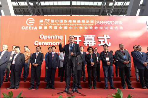 3.希沃受邀作為優秀教育裝備企業代表,在開幕式上進行發言。