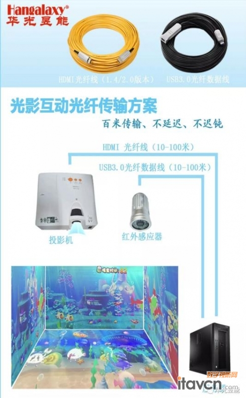 華光昱能Hangalaxy品牌的光纖線在十幾米到上百米的傳輸距離中實現了視界聽界的超高清革命,線纜兩端插頭內置光電微處理器,將輸出設備的電信號瞬息轉換為光信號,實現零遲緩、零失幀的超高清信號無損傳輸。此外,華光昱能的光纖線極富環境親和力:即插即用,無電磁射頻干擾,可與強電一起布線,線材輕柔能完美對付施工現場的拐彎抹角。這些敦厚實誠的線品,讓華光昱能Hangalaxy的USB3.0光纖線、HDMI光纖線、DP光纖線等產品在眾多高端的沉浸式體感互動項目中備受青睞。