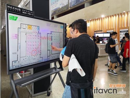 以往的各類展會,都是通過各種紙質的資料或者指引牌來知曉現場各個展館的方位,而記者在現場看到,InfoComm展會現場每個入口都安置了一臺MAXHUB會議平板,它可以實時展示現場地圖,用戶可以通過觸碰屏幕來了解相關信息,展控全局,更加直觀、快速便捷地了解到自己身處的位置和想要查看的展館信息,實現智能引導,將智能感帶給每個到場人員,讓整個 InfoComm China 展會頓時科技感滿滿!