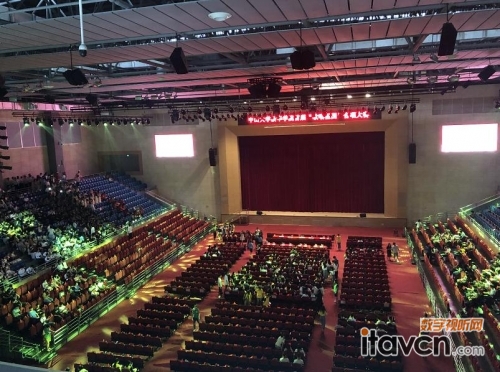 中山大學新華學院東莞校區體育館舞臺燈光系統由銳聲旗下代理品牌產品V-light和筑夢DLW系列燈具打造。