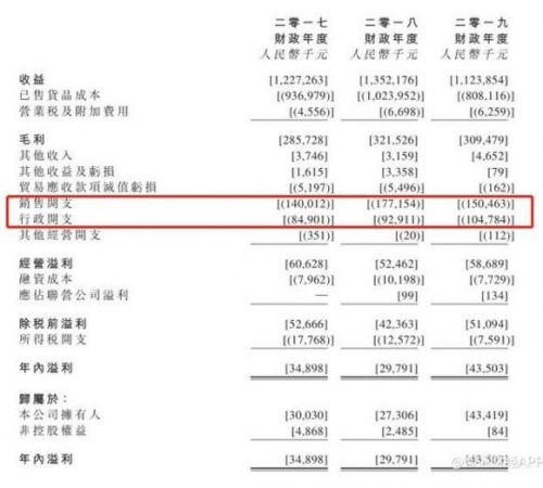 但是凈利潤并沒有同步走高,而是表現相對波動。2017-2019財年,東方中原的公司擁有人應占溢利為3003萬元、2731萬元和4342萬元。其中,2018財年的公司擁有人應占溢利的下滑,主要是因為銷售開支和行政開支的大幅提升。2019財年的的公司擁有人應占溢利的大幅上漲,主要是因為融資成本和所得稅開支減少,并非由業務經營推動。