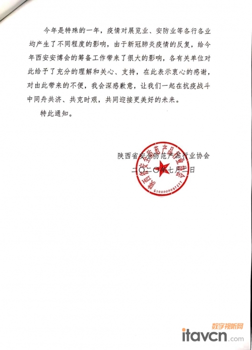 【數字視聽網訊】關于延期舉辦2020中國(西安)國際社會公共安全產品、智慧城市暨雪亮工程及5G技術應用博覽會的通知