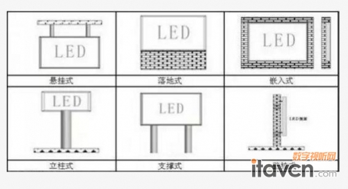 根據應用領域和安裝環境的不同,LED顯示屏安裝方式也有不同,分別有以下幾種安裝方式: