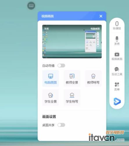遠程課堂中,右側錄播主機進行音視頻處理老師在一體機開啟互動