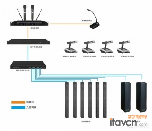 該項目采用了Dante全新的數字音頻解決方案,系統以無線射頻技術傳輸音頻及數字控制信號為核心,搭配其他音頻組成一套簡單、操作方便、易于擴展的專業擴聲系統。具有卓越的音質,能準確捕捉聲音每個細節,讓會議更穩定流暢,同時支持多種控制方式,可通過網頁、手機、平板、按鍵面板、觸摸面板等方式管理。