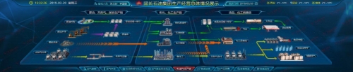 基于地理位置,展示原油開發區域、采油廠分布等信息,結合數字孿生虛擬仿真技術,對煉化廠區進行三維仿真,直觀形象模擬生產工藝流程,融合可視化數據統計圖表,立體呈現石油煉化總體態勢。