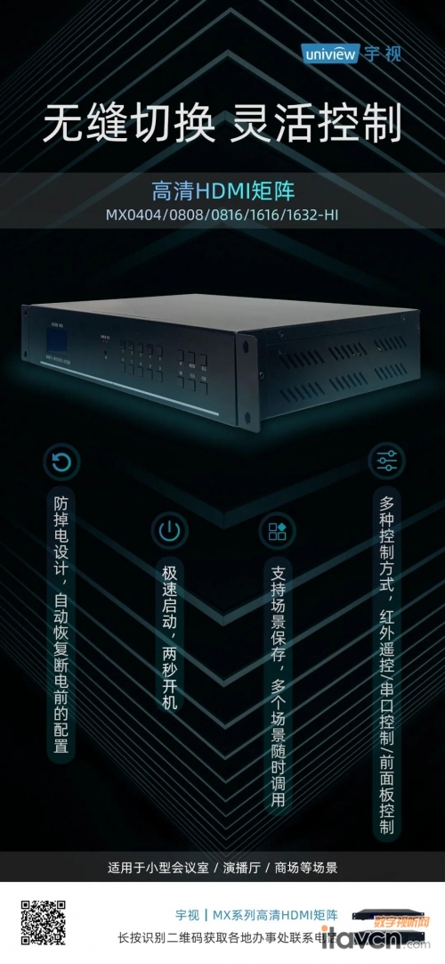 - 多種控制方式,紅外遙控/串口控制/前面板控制