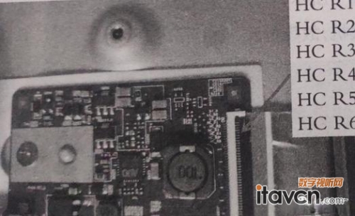本機(jī)液晶屏采用的是AUO(臺(tái)灣友達(dá))公司生產(chǎn)的T500HVN01.0 型液晶屏。在故障出現(xiàn)后立即關(guān)機(jī),分別拔下邏輯板到液晶屏邊板的左右排線后再開機(jī),發(fā)現(xiàn)拔下右側(cè)排線后屏顯圖像上下抖動(dòng),拔下左側(cè)排線后屏顯圖像正常,說明屏幕左側(cè)Y軸線路有故障。其應(yīng)急維修方法是斷開行位移脈沖驅(qū)動(dòng)信號(hào)到屏幕左側(cè)Y軸線路的通路。該液晶屏的行位移脈沖驅(qū)動(dòng)信號(hào)在邏輯板上的標(biāo)注為HCR1~HCR6 ,如下圖所示。