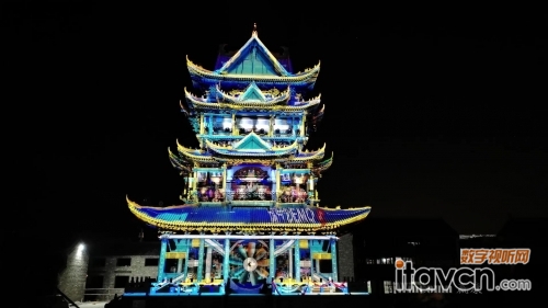縉福樓投影秀是古城演出的重中之重,贏康協助浙江燈光總包公司共同完成了縉福樓光影秀,負責投影秀媒體片源制作和投影系統設計實施工作。