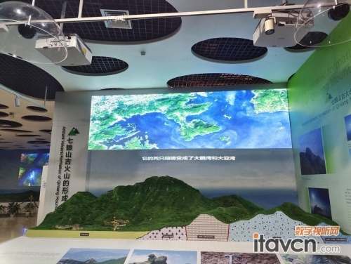 在館內,14臺NEC液晶激光工程投影機PA703UL+承擔起了博物館多媒體改造項目的重任。憑借7000流明高亮度、WUXGA分辨率及REC.2020廣色域等優勢,NEC PA703UL+將由古至今的各式地貌地形本真地還原在巨幕之上。加上設備內置的邊緣融合技術,多機融合畫面也能保持超高的一致性與和諧度,融合帶區域過渡平順自然,毫無視覺上的突兀感。在展示各種地貌的成因與現狀時,高清晰度的畫面完美還原了自然的神韻與山川湖泊的真實面貌,令游客紛紛感嘆大自然的鬼斧神工。