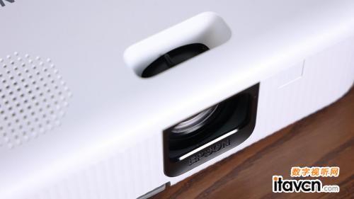 愛普生CO-FH02同樣采用簡約白色外觀,整體顯得很是輕薄。接口被隱藏在機身左側,掀開蓋板即可看到,這樣的設計可以提升機身外觀的整齊度。愛普生CO-FH02隨機會附帶一個電視棒(以及相關線纜),可安裝在上面提到的蓋板下,這樣它就能變身為一臺內置騰訊視頻·極光TV系統的智能投影。