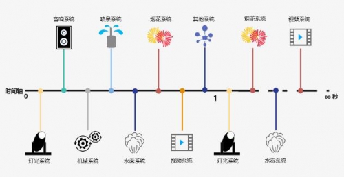 Control Max演出控制系統采用時間軸的方式將音視頻,燈光,特效,機械,噴泉,煙花等系統進行集中控制管理,以此達到多系統的實時同步,進而實現導演的演出創意。