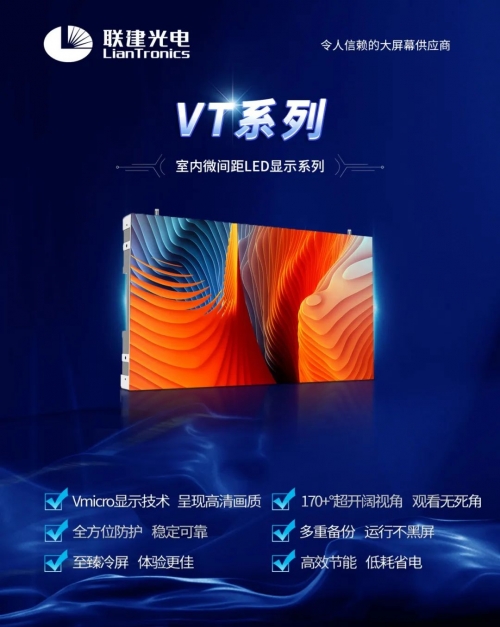 大屏采用的是聯(lián)建光電VT微間距系列,COB全倒裝芯片,實(shí)現(xiàn)散熱佳、光效高、壽命長、光色一致性佳的優(yōu)勢;共陰驅(qū)動(dòng)方案,有效降低發(fā)熱,更環(huán)保節(jié)能;一體化封裝技術(shù),>10000:1超高對比度;整面覆膜,實(shí)現(xiàn)防護(hù)靜電、防撞、防磕碰。