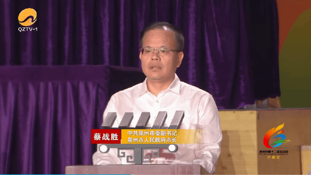 在全場矚目的主席發言臺上,泉州市委副書記、泉州市人民政府市長蔡戰勝、泉州市人民政府副市長陳小輝、福建省體育局副局長黃海峽發表致辭;他們強調了體育運動在促進全民健康、增強人民體質方面的重要作用,并對本屆運動會的成功舉辦表示了祝賀。