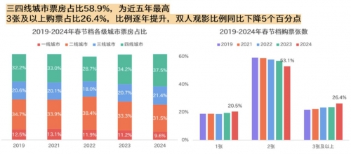 2024春節檔三四線城市票房占比58.9%,為近五年最高