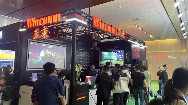 贏康本次展出的具體內容,包括科影達T50夜視飛行訓練模擬體驗,Extron FOX3光纖系統和電競系統支持的120幀高刷游戲,7thSense高質量視頻播放、像素處理和控制解決方案,以及Alcorn音頻、視頻和表演控制產品,吸引了眾多參觀者的目光。
