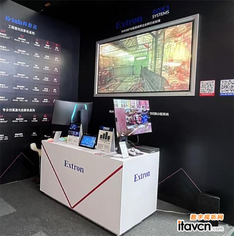 展位的另一個人氣展項是Extron品牌展區,贏康在展位搭建了真實的電競場景,訪客可以現場暢玩120幀高刷游戲,感受絲滑極致體驗,該展項應用了Extron電子競技系統,它具有高分辨率、高刷新率、高色深、零延遲切換分配系統的性能。電競設施的獨特性能,要求特定的 AV 系統設計,確保帶給玩家卓越的競技體驗,同時也保證觀眾的沉浸式觀賽。