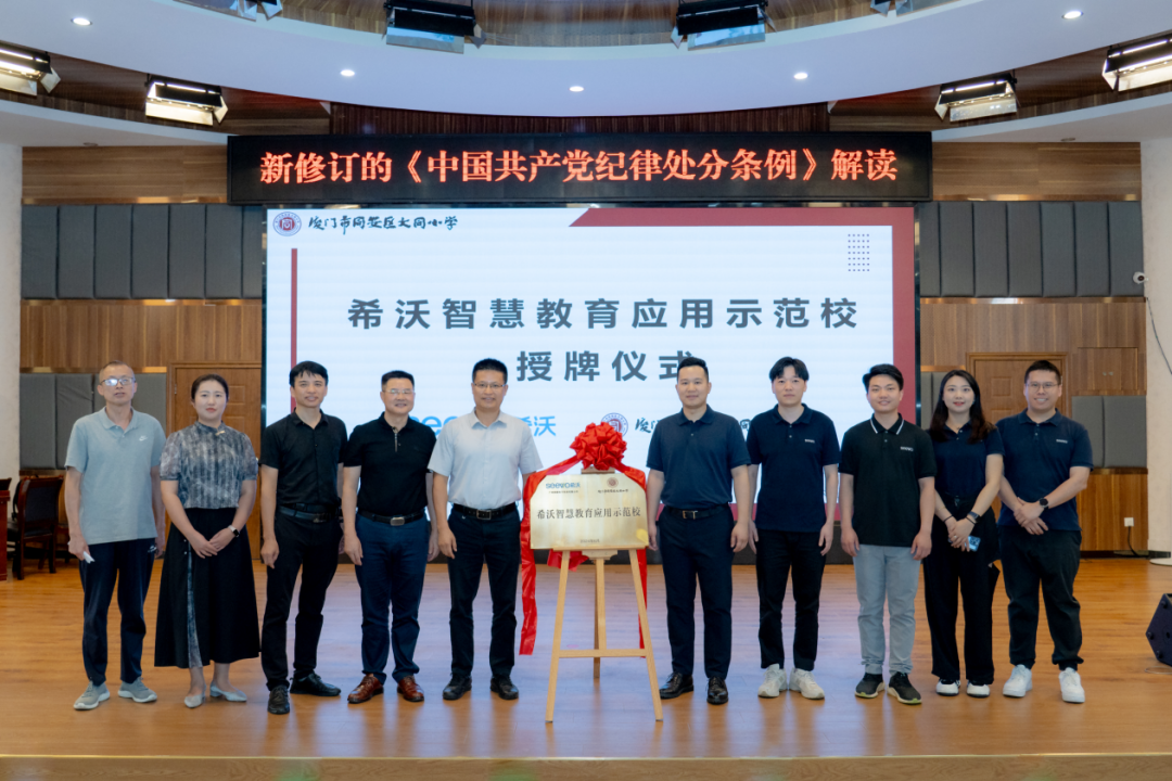 【數字視聽網訊】為進一步推進智慧校園建設,加快數字化與教育教學融合的創新發展,協助打造數字化應用特色學校。6月14日上午,希沃聯合廈門市同安區大同小學舉行“希沃智慧教育應用示范校”簽約及揭牌儀式。學校黨總支書記、校長葉特愉帶領學校領導班子成員,年段長,學科組長參加儀式。