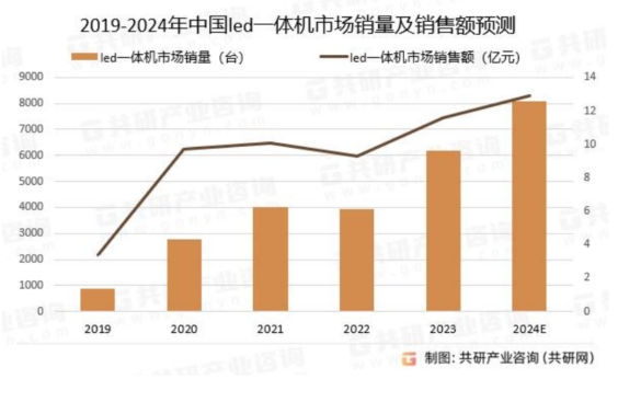 2019-2024年中國led一體機市場銷量及銷售額預測