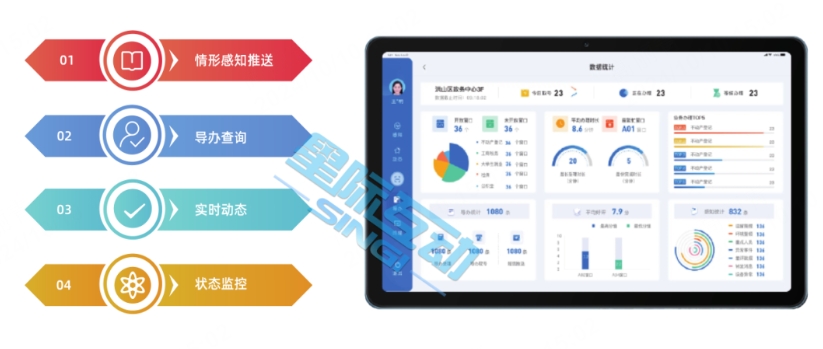 導辦臺/咨詢臺/樓層管家通過智能終端實時獲取大廳數據、人員、環境、異常事件,并推送相關信息。系統支持查詢、動態展示、設備管控、掃碼引導、預約簽到等便民服務,助力高效導辦咨詢。