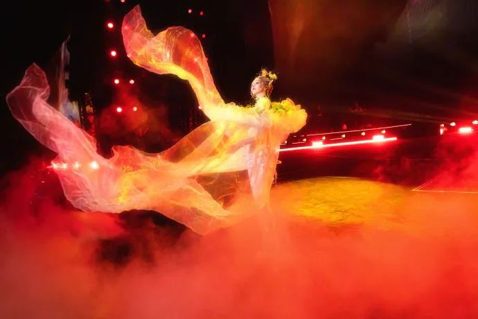 此時,憑借高刷新、高灰階、高亮度的特性,聯誠發龍騰系列舞臺LED顯示屏打造出豐富的色彩層次,為這只鳳凰注入了靈動的火焰,使其在舞臺上更顯栩栩如生,每一片羽毛的紋理、每一絲火焰的跳動,都通過屏幕的獨特顯示效果清晰地傳達給觀眾,讓觀眾仿佛能感受到鳳凰涅槃時的熾熱與震撼。
