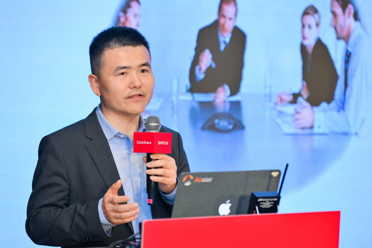 為應對會議市場變革與用戶需求提升,巴可研發推出全新的可立享無線會議屏。巴可中國會議協作產品經理張金成詳細介紹并演示了新品優勢。