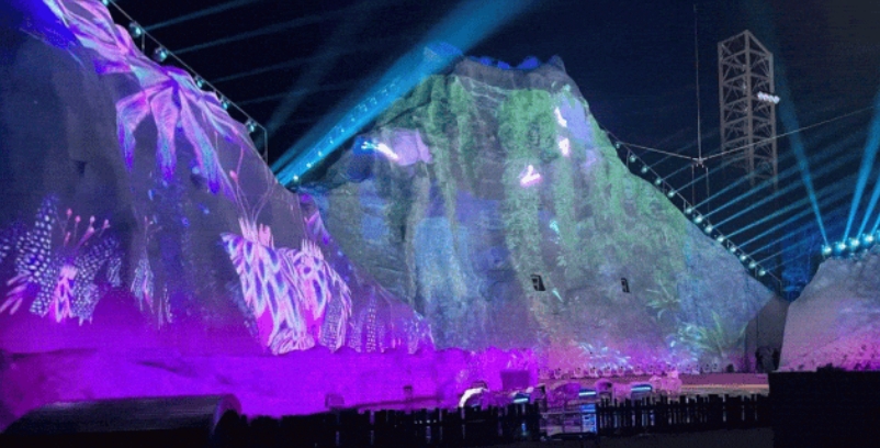 在安圖縣大戲臺河風景區的演出現場,24 臺 DWU19-HS 激光投影機擔綱視覺呈現的核心引擎。
