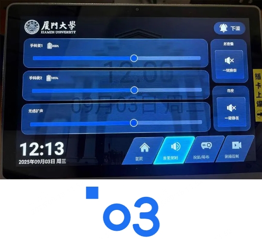 教師走進(jìn)教室,通過人臉識別、掃碼、刷卡等方式開啟設(shè)備。希沃“無感擴(kuò)聲”系統(tǒng)即自動進(jìn)入工作模式,無需配對、無需佩戴、無需調(diào)試;音量滑動條嵌入講臺中控面板,指尖輕滑即可微調(diào),屏幕同步顯示音量變化。下課一鍵關(guān)機(jī),全程無復(fù)雜操作、零打擾,真正實(shí)現(xiàn)“無感啟動、輕松使用”。